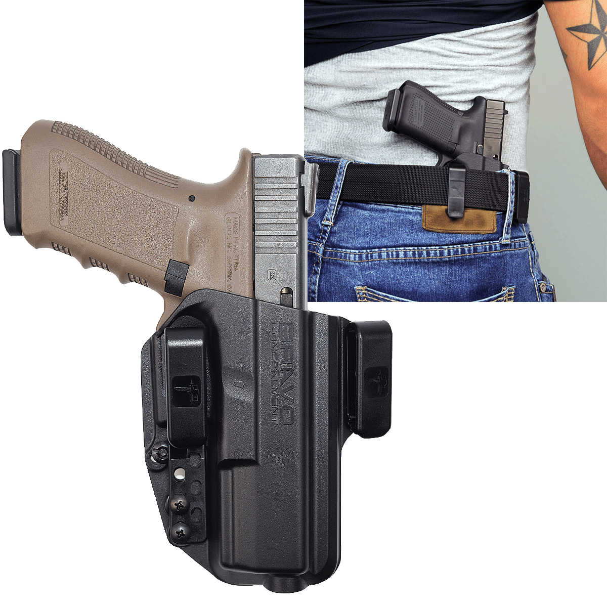 The Torsion IWB concealed carry gun holster is a dedicated IWB holster. Whether you run appendix or anywhere else around your waist line this concealment holster is tough and built to last. The Torsion is easy to wear with our standard double IWB belt clip configuration. If you want more comfort and flexibility in your Everyday Carry positions simply remove the shorter belt clip and utilize a single belt clip for on-the-fly adjustments.