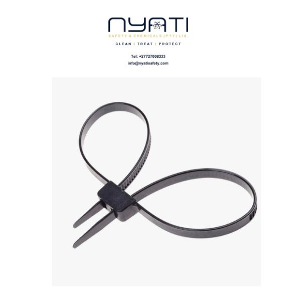 Plastic (Cable Tie) – Double – SpecificationsHigh strength polyamide / nylon 6 / 6Total length: 89 cmThickness: 3 mmWeight: 35 g per Flexi cuffStrength: 200 kg (locked)Two single completely enclosed locking headsStandard color: Black (other colors available based on quantities)Standard packaging: 20 per packet